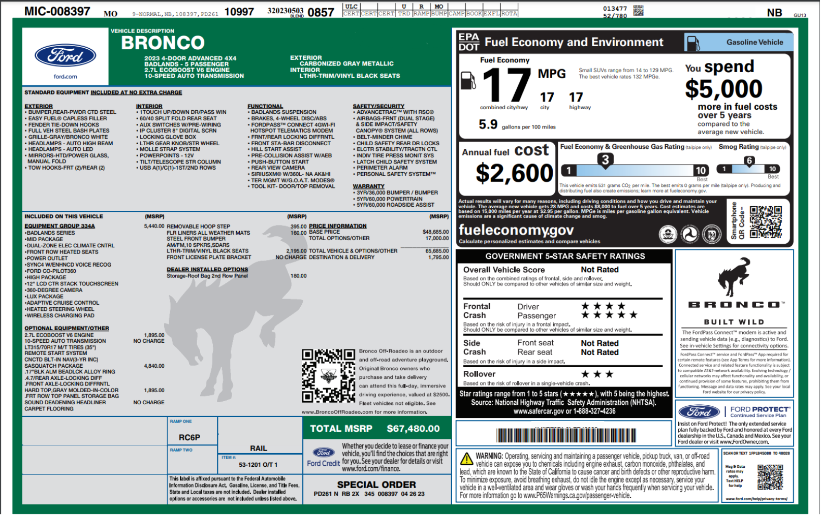 2007-2025 Ford/ Lincoln Window Sticker (Monroney Label)