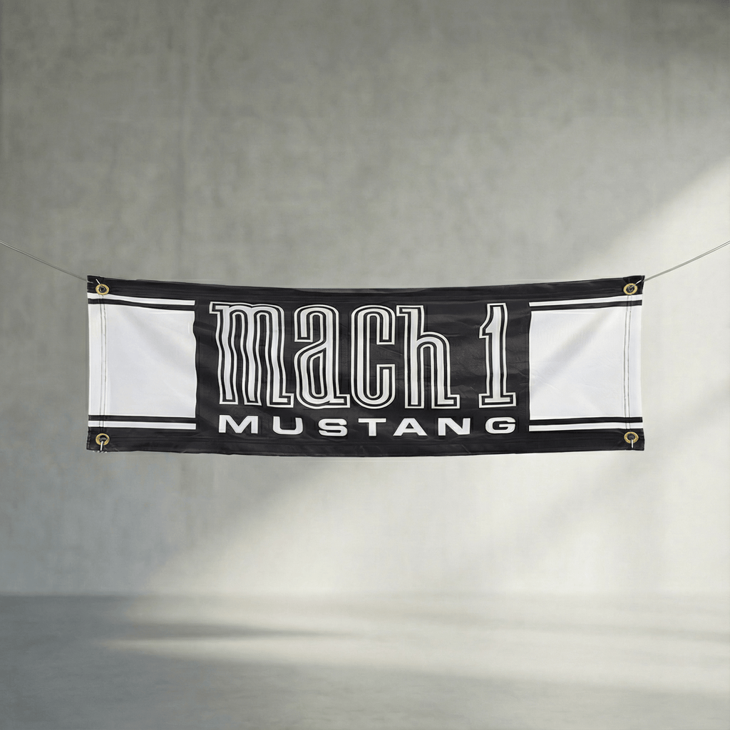 Introducing our lightweight, fabric banner, perfect for your garage, man cave, or to bring along to car shows! This banner features convenient hanging grommets in each corner, making it easy to display your love for Ford. Imagine it hanging from the hood of your Ford Mustang or F150 Raptor, adding a touch of style to car show display.