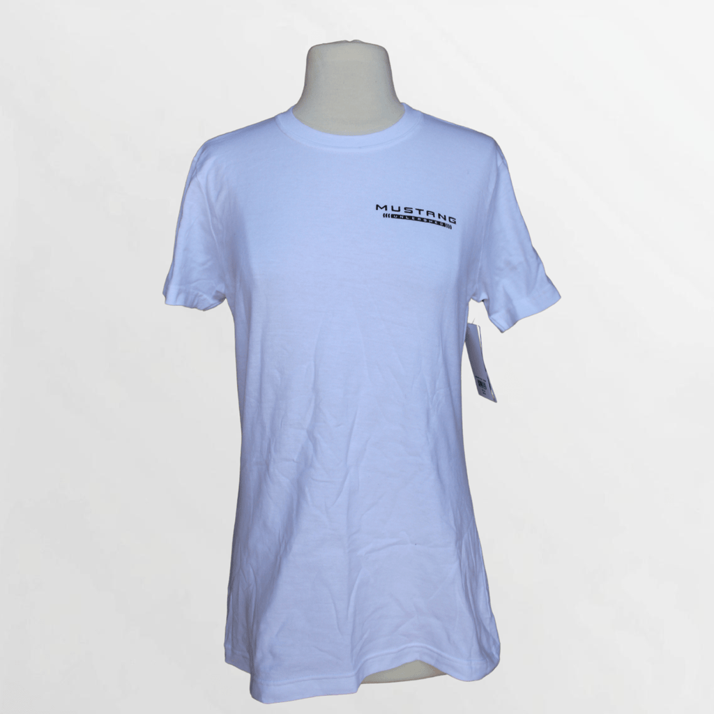 A clean, timeless staple for every Mustang enthusiast. This officially Ford licensed Women's Logo Graphic T-Shirt features a minimalist front design with the black Mustang Unleashed logo on the chest, contrasted by a bold, signature black running pony graphic on the back.